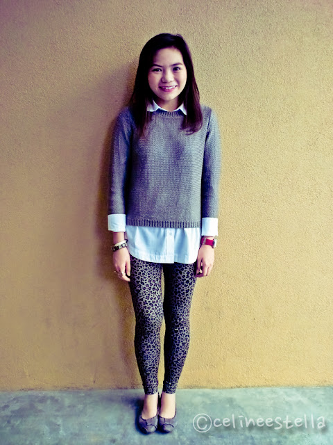 Collar necklaces are so in right now especially if you want to have a unique effect for your simple top, but I am not sure if it will look good on me, so I decided to do my own version without having to buy these collar necklaces.  Put on my classic crisp white polo and wore my knitted cropped top over it to make a collar effect, paired it with my leopard leggings to boosts up my look.